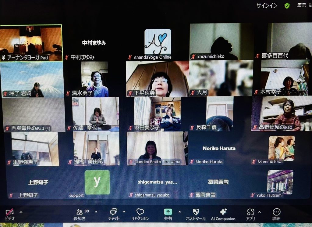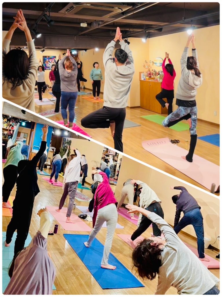みんなで行う年初めの太陽礼拝はとても気持ち良く、