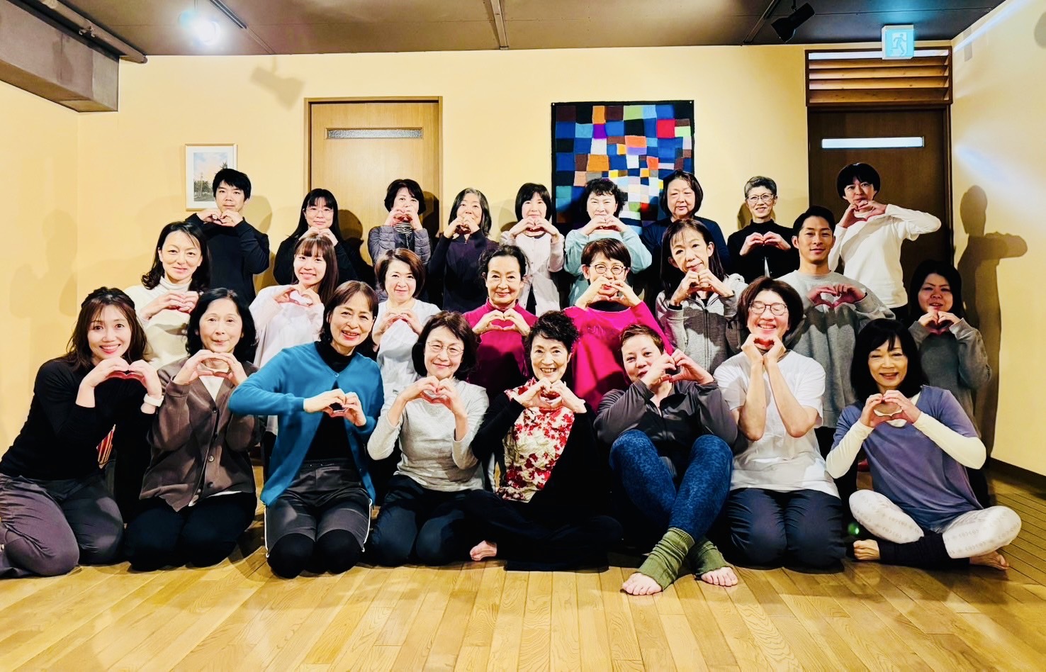 清々しい夜明けと共に始まった早朝ヨーガにスタジオは24名、