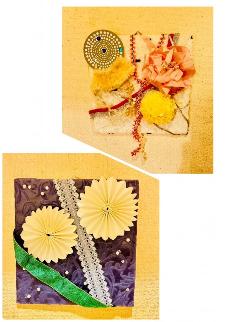 ハトチャの皆様が和紙を水彩絵の具で染めて、